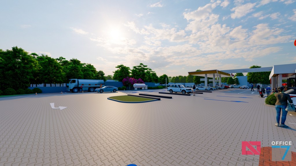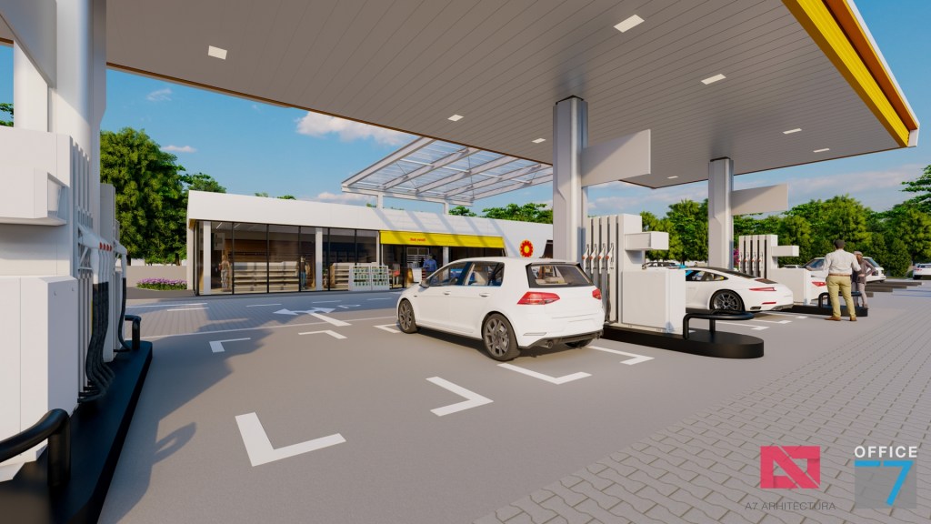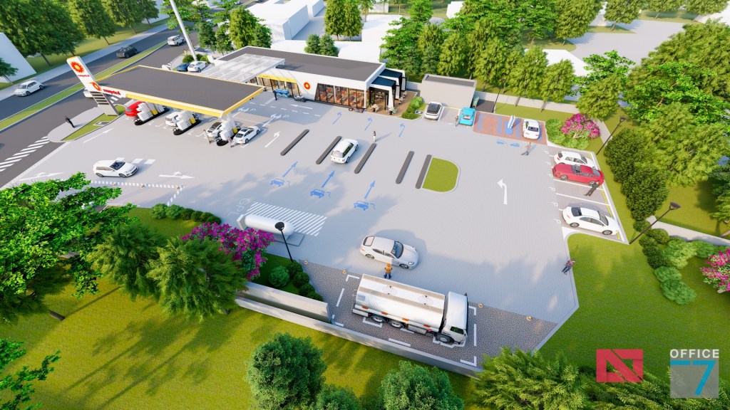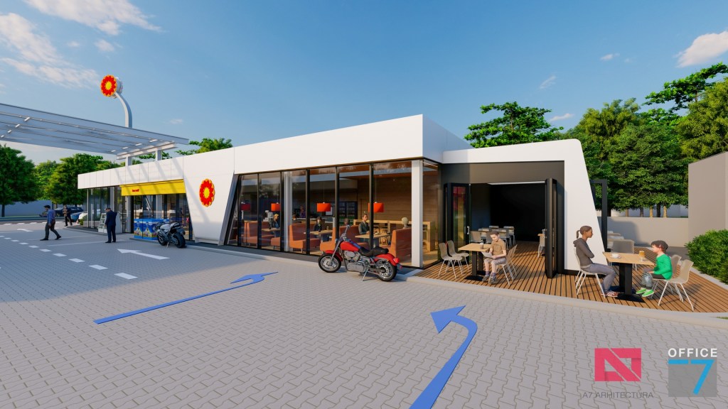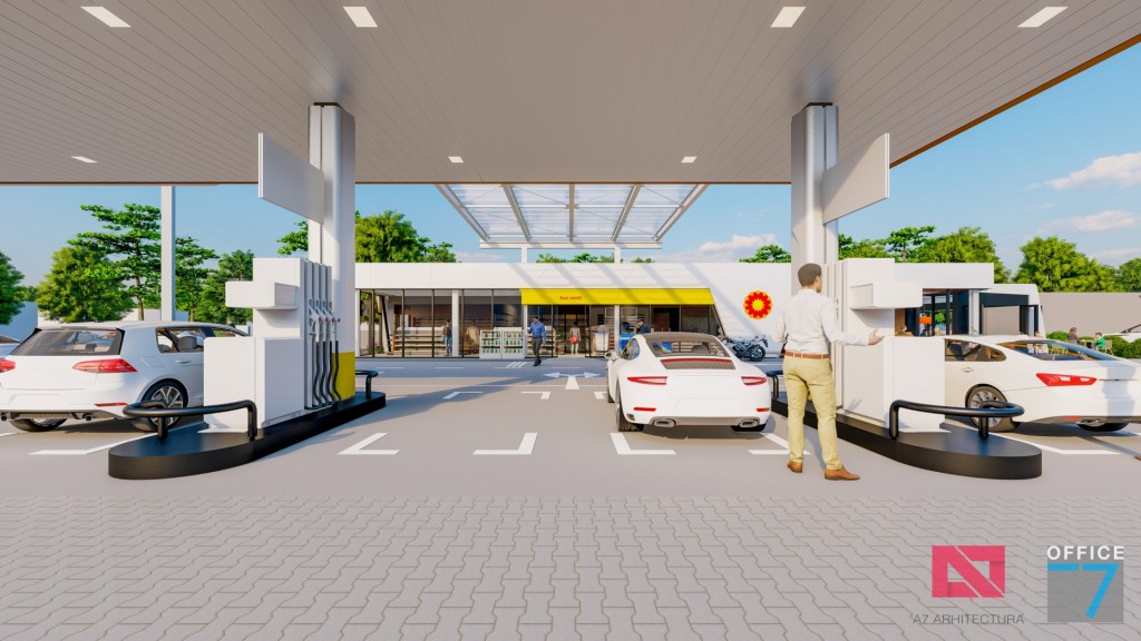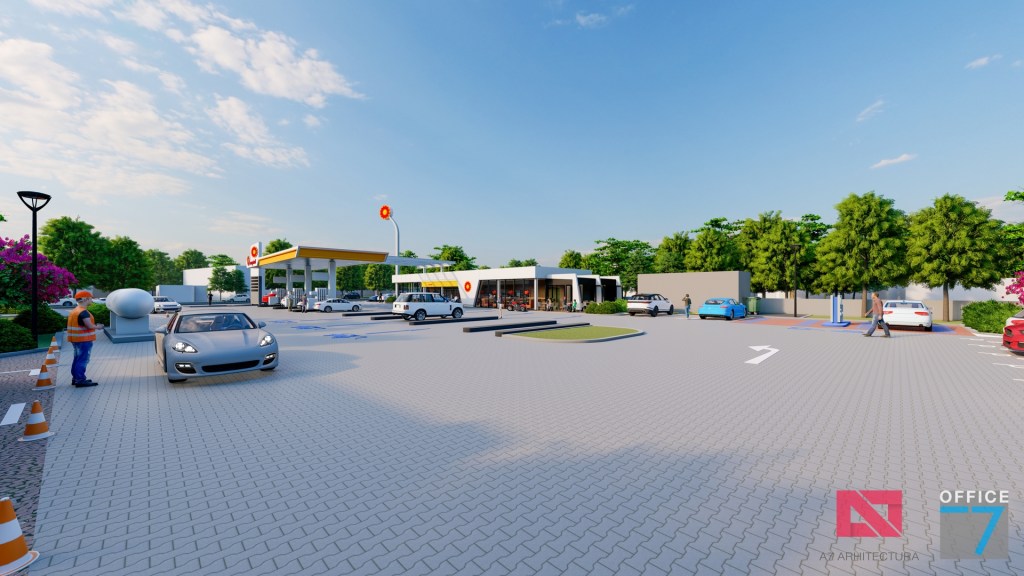 Statie distributie carburanti Rompetrol Craiova pe bulevardul Romanescu si spalatorie auto manuala, concept si proiectare completa.