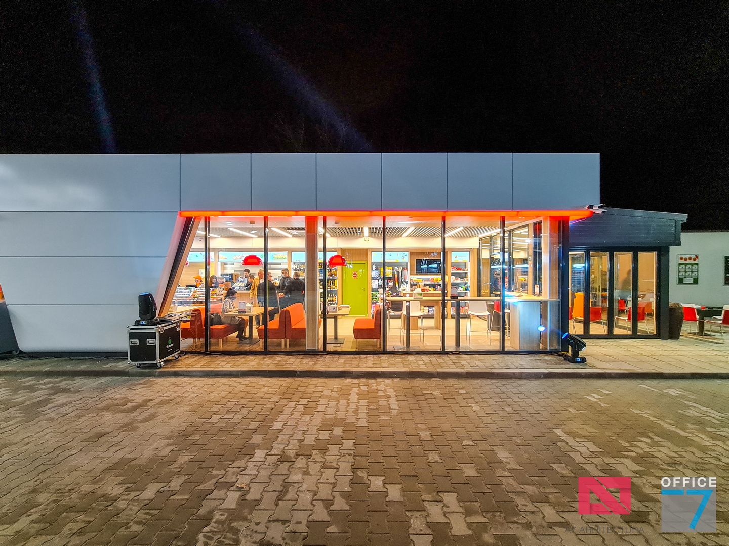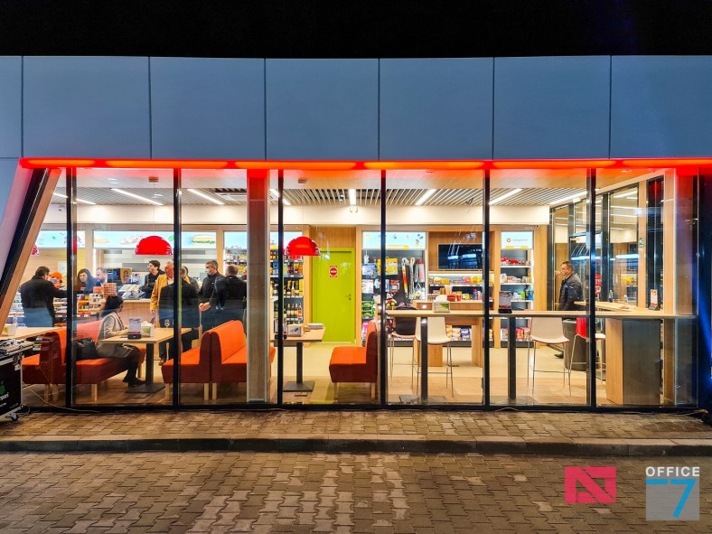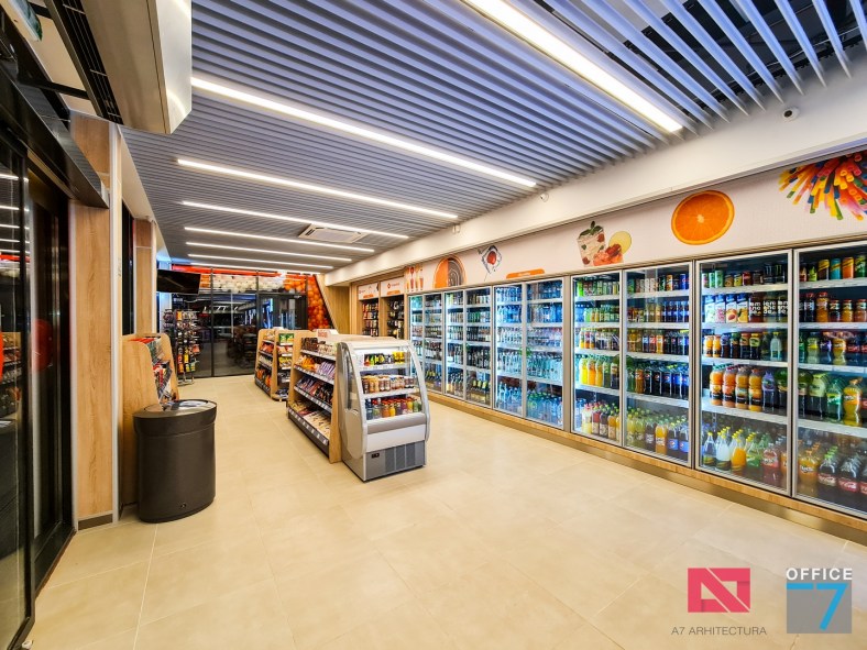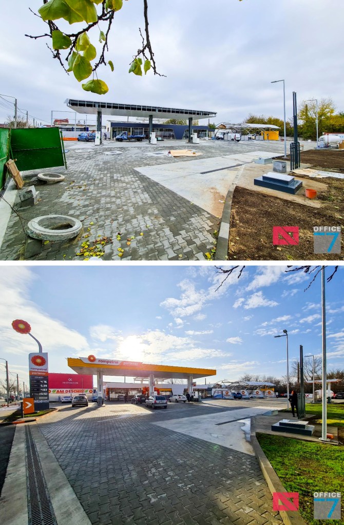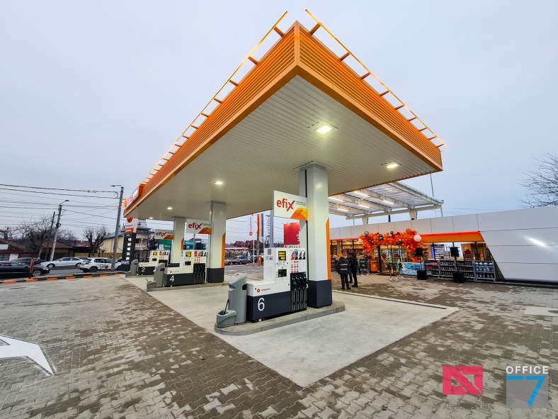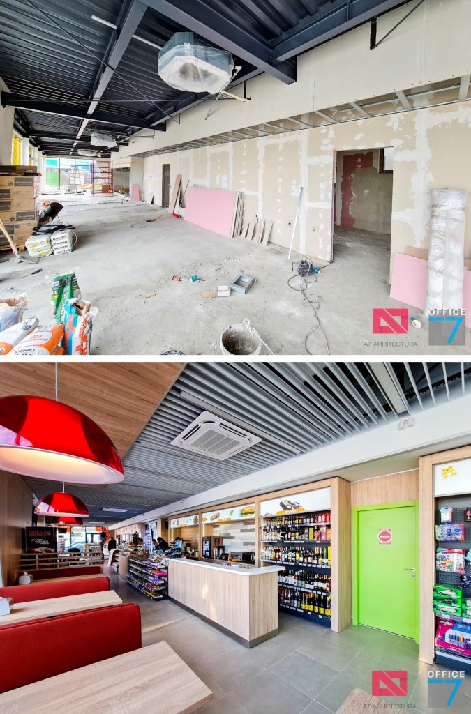 Design Interior si Amenajare Interioara Statie distributie carburanti Rompetrol Romanescu Craiova, situatie pe Bulevardul Nicolae Romanescu numarul 80. Concept proiect 3D, design exterior si interior, Proiectare completa arhitectura – structura – instalatii – tehnologie – platforme si drumuri, avizare, autorizare, urmarire executie si pm. Benzinaria este compusa din: cladirea spatiului comercial + restaurant, copertina cu pompe distributie carburanti, spalatorie auto manuala cu 3 boxe, locuri de parcare si servicii.