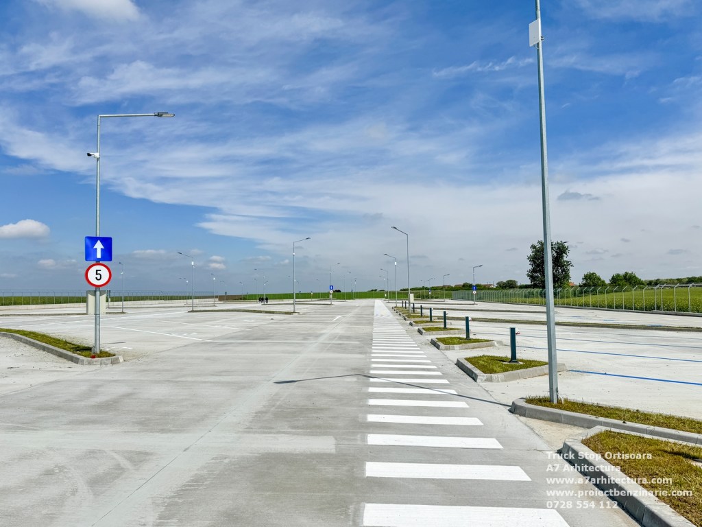Etapa 1 – Finalizata si Receptionata 2023 – Parcarea Securizata nivel Platinum (CINEA) cu accese, intersectie la drum judetean, Cladire Servicii Soferi (lounge, toalete, bucatarie, dusuri, spalatorie).